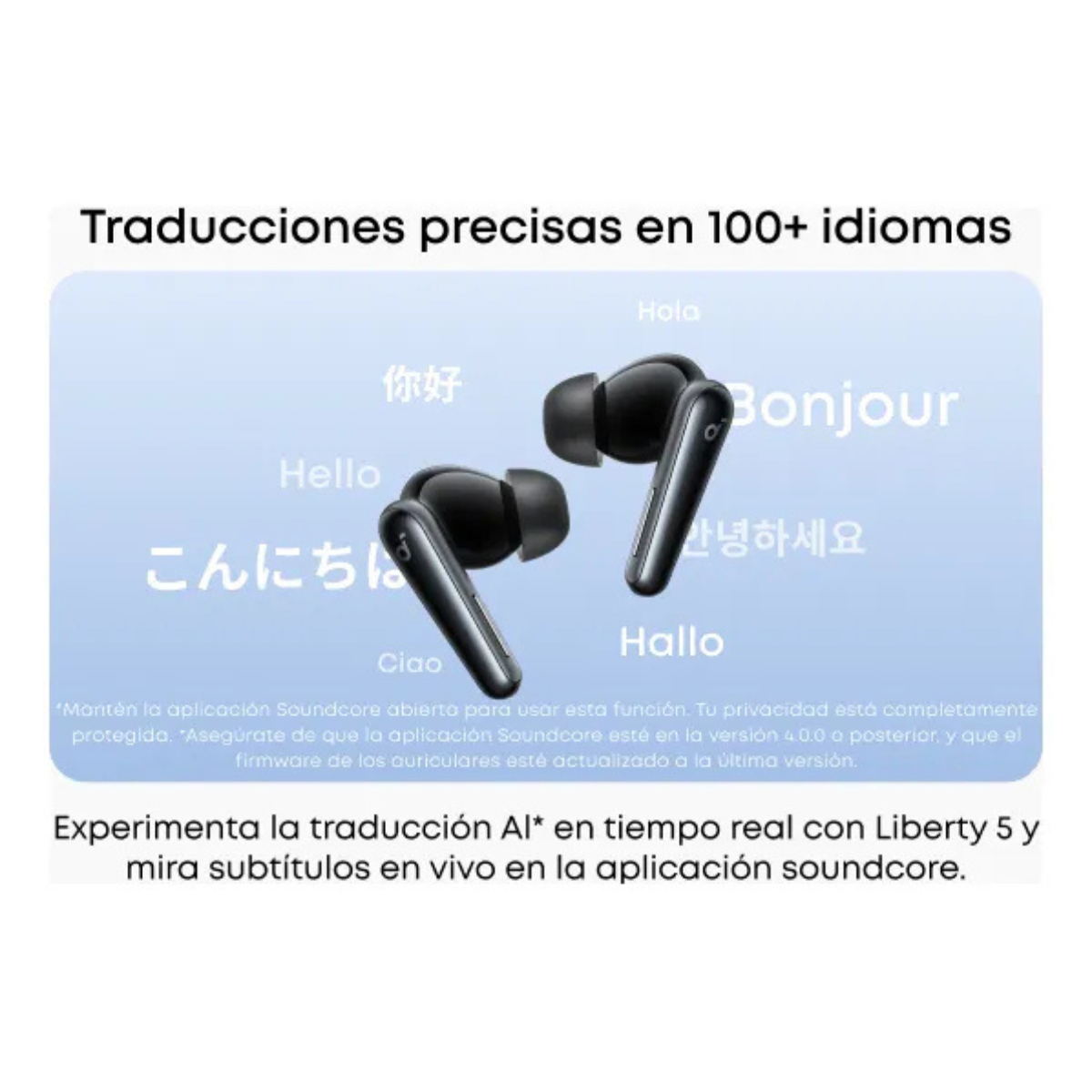 Los Soundcore Liberty 5 ofrecen una experiencia inalámbrica premium con tecnología True Wireless (TWS) y Cancelación Activa de Ruido (ANC), diseñada para reducir el ruido ambiental y mejorar la inmersión en tu música o llamadas.Integran controladores de alto rendimiento que entregan sonido potente, graves profundos y excelente claridad en voces. Gracias a sus múltiples micrófonos con tecnología de reducción de ruido, permiten realizar llamadas más claras, incluso en entornos con ruido.Su batería de larga duración, junto con el estuche de carga portátil, proporciona autonomía suficiente para acompañarte durante todo el día. Incorporan conexión Bluetooth estable y compatibilidad con la App Soundcore, donde puedes ajustar el ecualizador y personalizar tu experiencia auditiva.