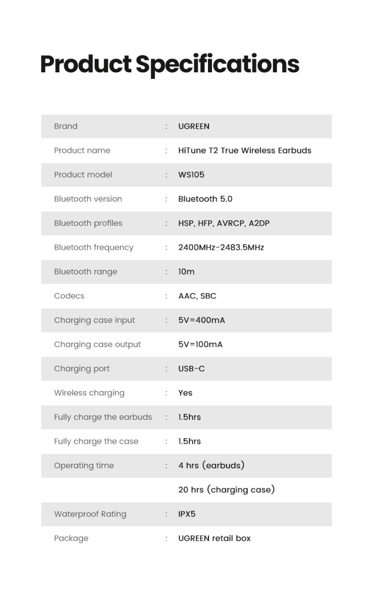 UGREEN Audífonos Inalámbricos HiTune T2 True Wireless Negro