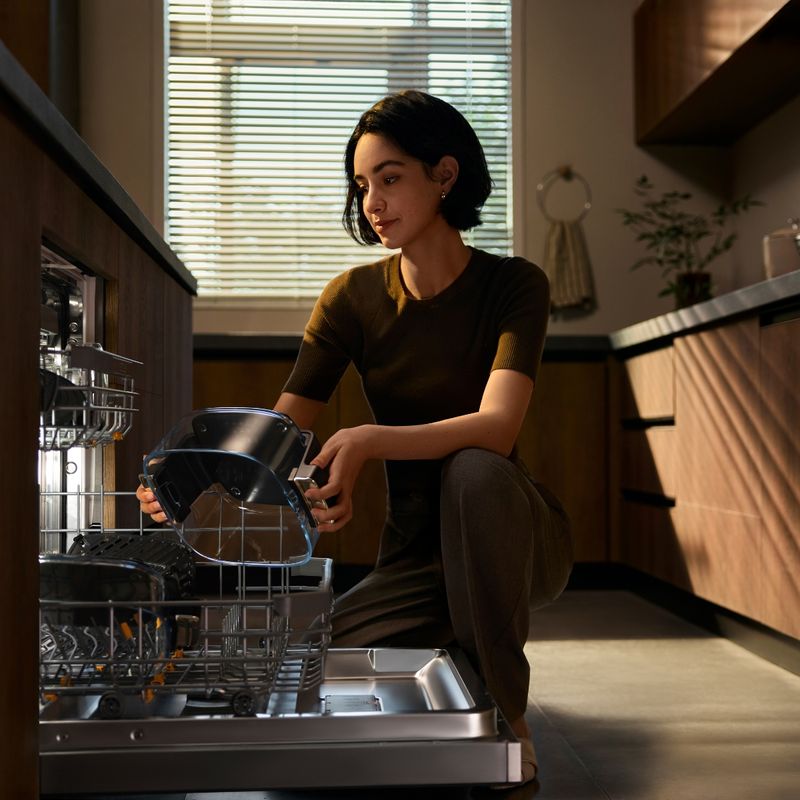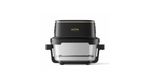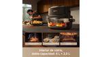 8 recetas preestablecidas + panel táctil LED. Curvas de cocción optimizadas para freír al aire, asar, hornear y recalentar. Pausa inteligente al levantar la tapa para añadir salsas o mover alimentos y reanudar sin perder ajustes. Accesorios apto lavavajillas.